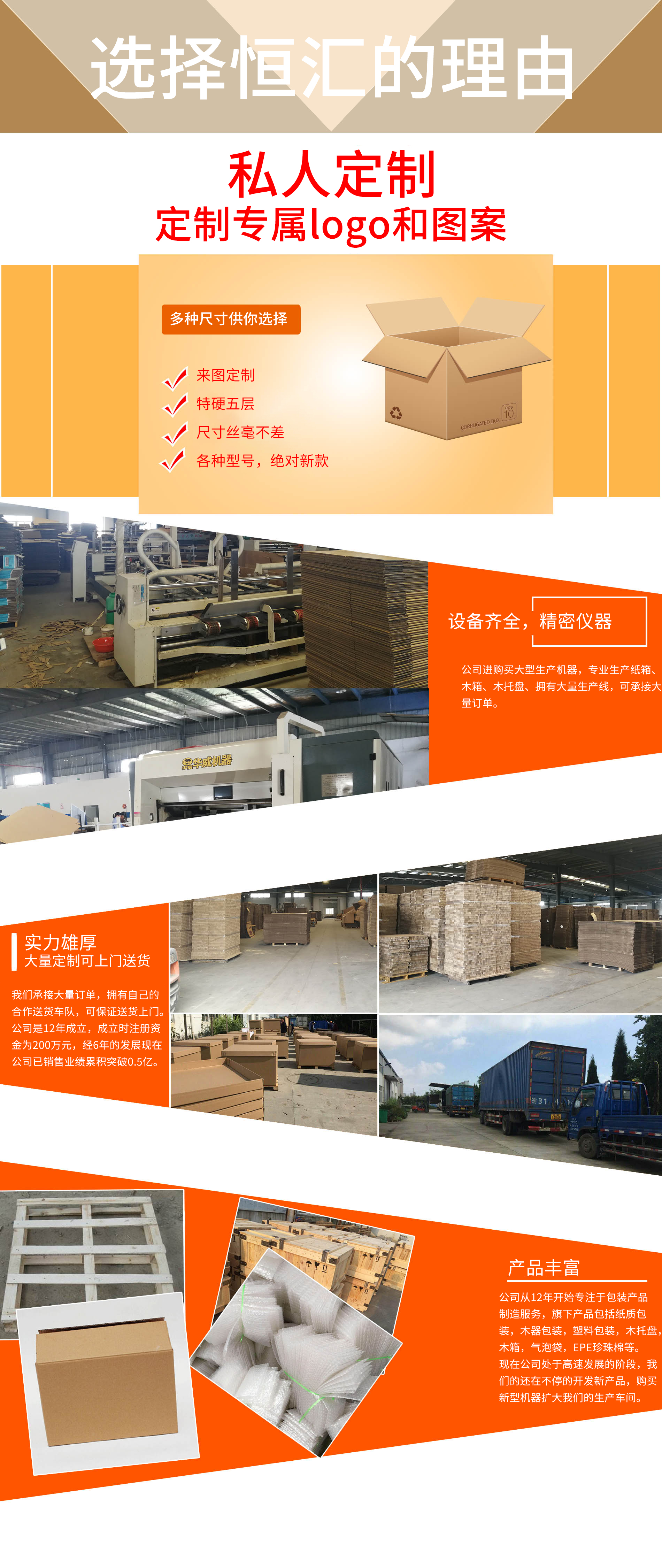 蕪湖恒匯包裝有限公司于2012年4月12日成立,公司地址現(xiàn)位于蕪湖市經(jīng)濟(jì)開發(fā)區(qū)泰山路26號( 蕪湖鄭明物流院內(nèi)),本公司主要生產(chǎn)紙質(zhì)包裝、木器包裝、塑料包裝( EPE珍珠棉、氣泡袋、平口袋)等包裝產(chǎn)品,我司擁有完整科學(xué)的質(zhì)量管理體系。本公司自成立后堅(jiān)持以“信任從品質(zhì)開始"的理念與很多客戶進(jìn)行友好業(yè)務(wù)往來,業(yè)務(wù)逐年增長,為了擴(kuò)大規(guī)模再生產(chǎn),本公司又于2019年12月注冊蕪湖金淮商貿(mào)有限公司,兩家公司以互聯(lián)網(wǎng)+實(shí)體模式共同發(fā)展,爭取到2022年銷售業(yè)績突破2億元,公司將實(shí)行資源整合統(tǒng)一管理模式,將一如既往堅(jiān)持‘務(wù)實(shí)創(chuàng)新,團(tuán)結(jié)奮進(jìn),精益求精’的企業(yè)精神和'質(zhì)量為先,客戶至上’的經(jīng)營宗旨,不斷完善服務(wù)體系,以社會化的服務(wù)精神,真誠為廣“大客戶提供完善的服務(wù),以熱情的銷售,全程陪同,及時(shí)熟知您的需求,量身定制,為您節(jié)省成本,節(jié)約能耗,為您企業(yè)發(fā)展插上騰飛的翅膀。讓我們成為客戶的同時(shí),永遠(yuǎn)成為朋友。蕪湖恒匯包裝有限公司...